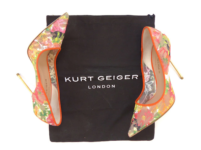 "Britton Mesh' from Kurt Geiger London is a towering court shoe, packed with attitude and a must have SS15 floral print."